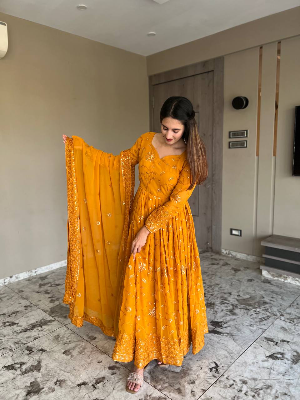 *Anarkali Fabric :* Heavy Faux Georgette With 5mm Sequence And Embroidery Work* *( Fully Sleevs )*